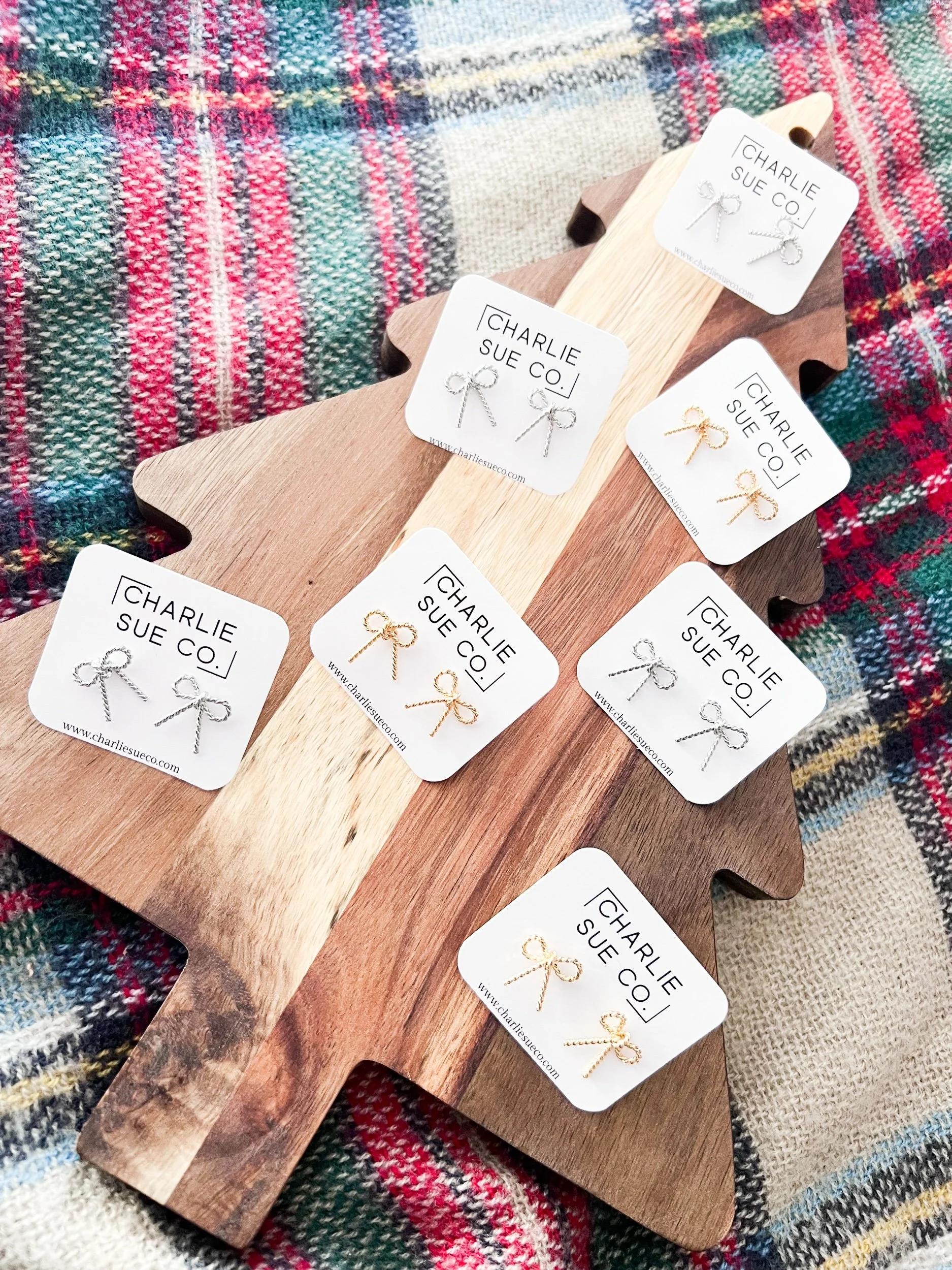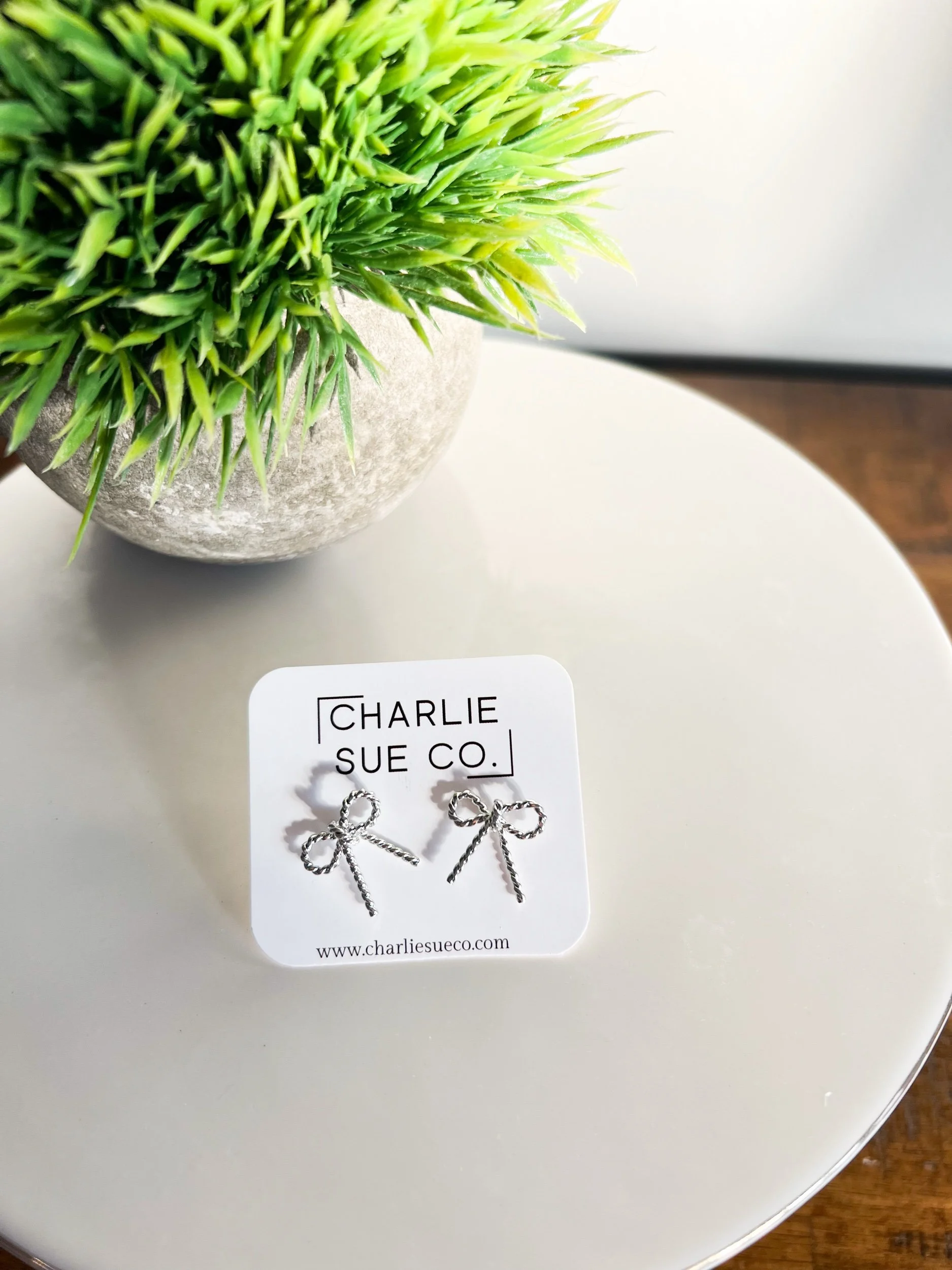Shop › Metal bow stud Image 1 of 3 Image 2 of 3 Image 3 of 3 Metal bow stud $10.00 Metal: Gold Silver Quantity: Add To Cart Added!