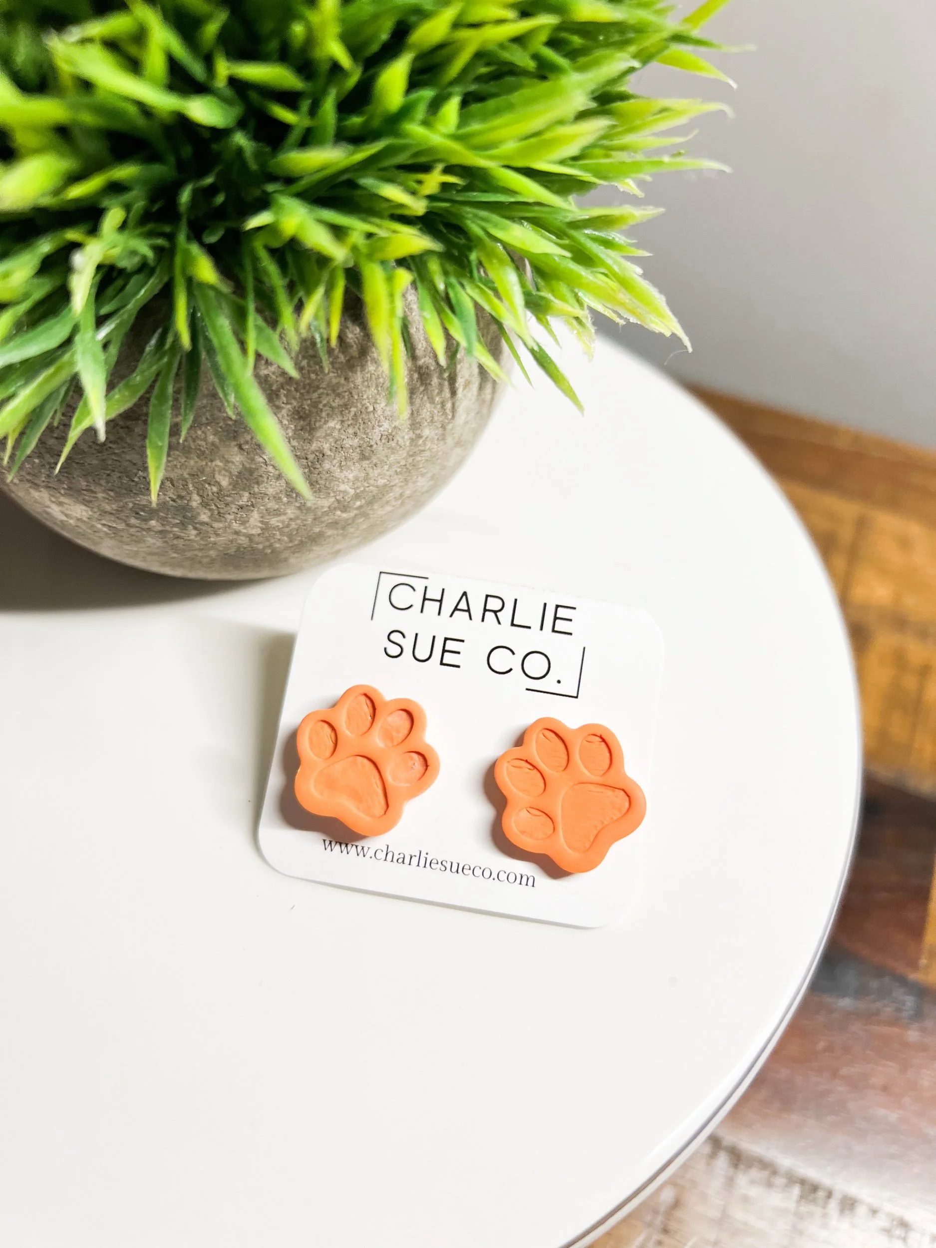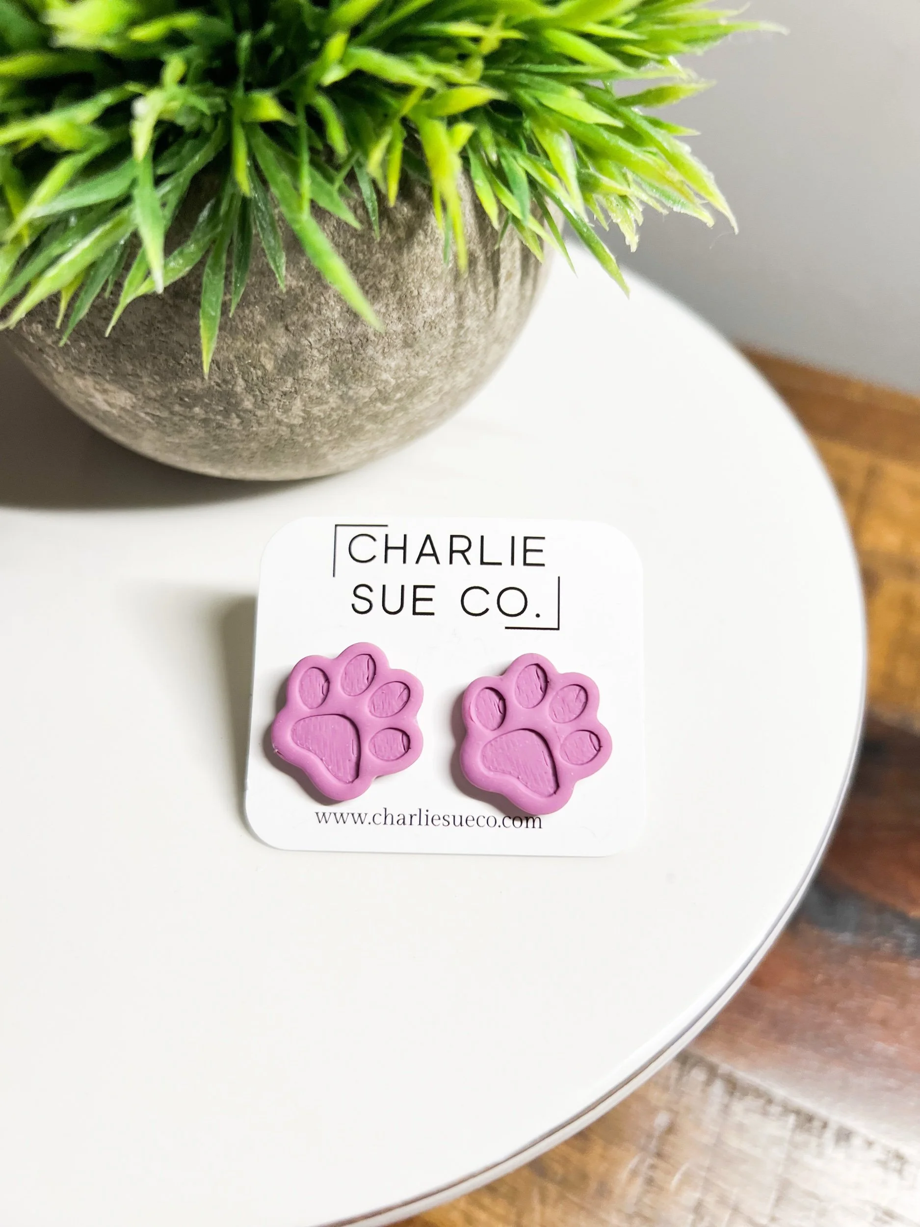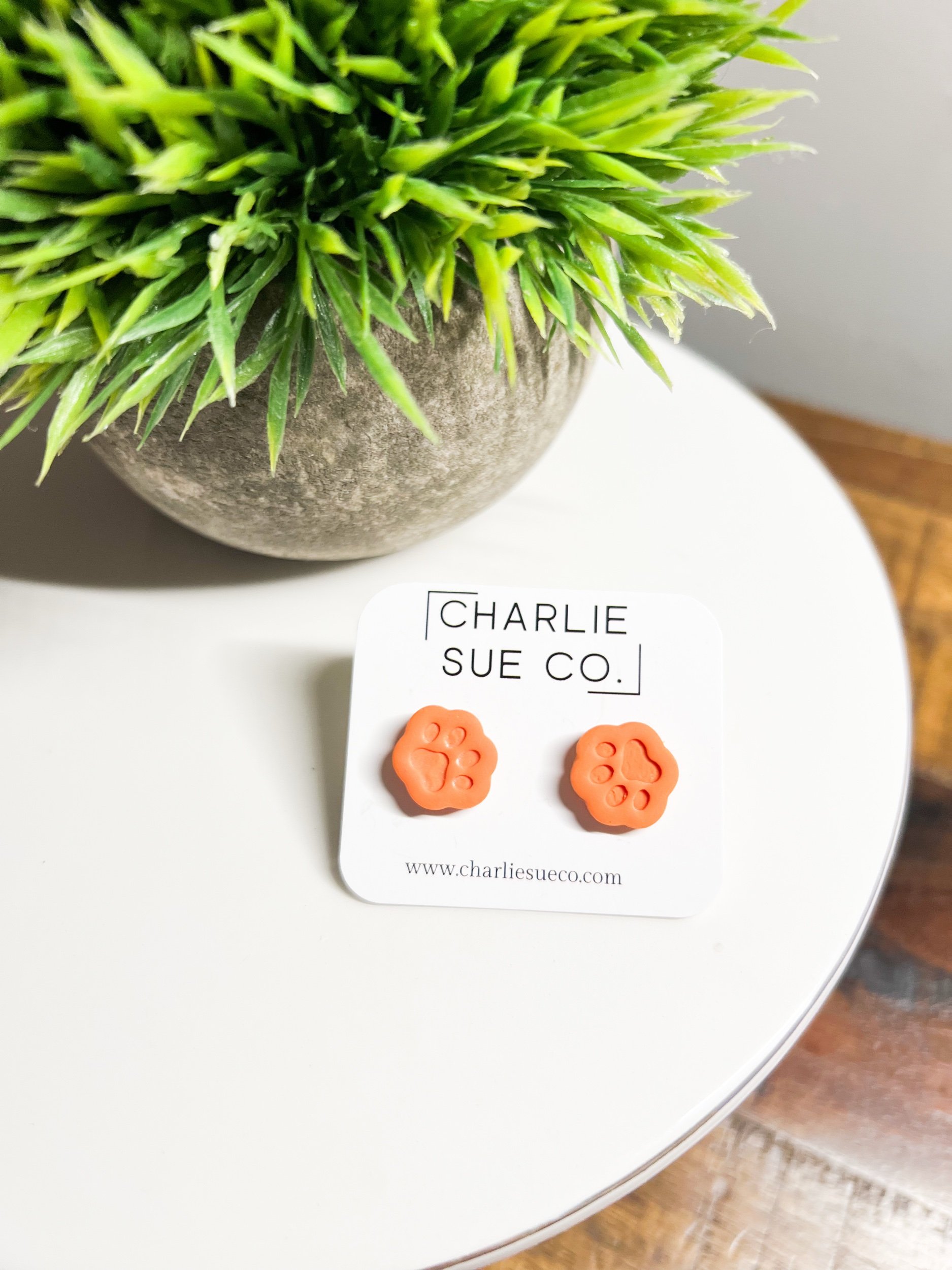 Shop › Paw Stud Image 1 of 3 Image 2 of 3 Image 3 of 3 Paw Stud $10.00 Color: Small Orange Large Orange Small Purple Large Purple Quantity: Add To Cart Added!