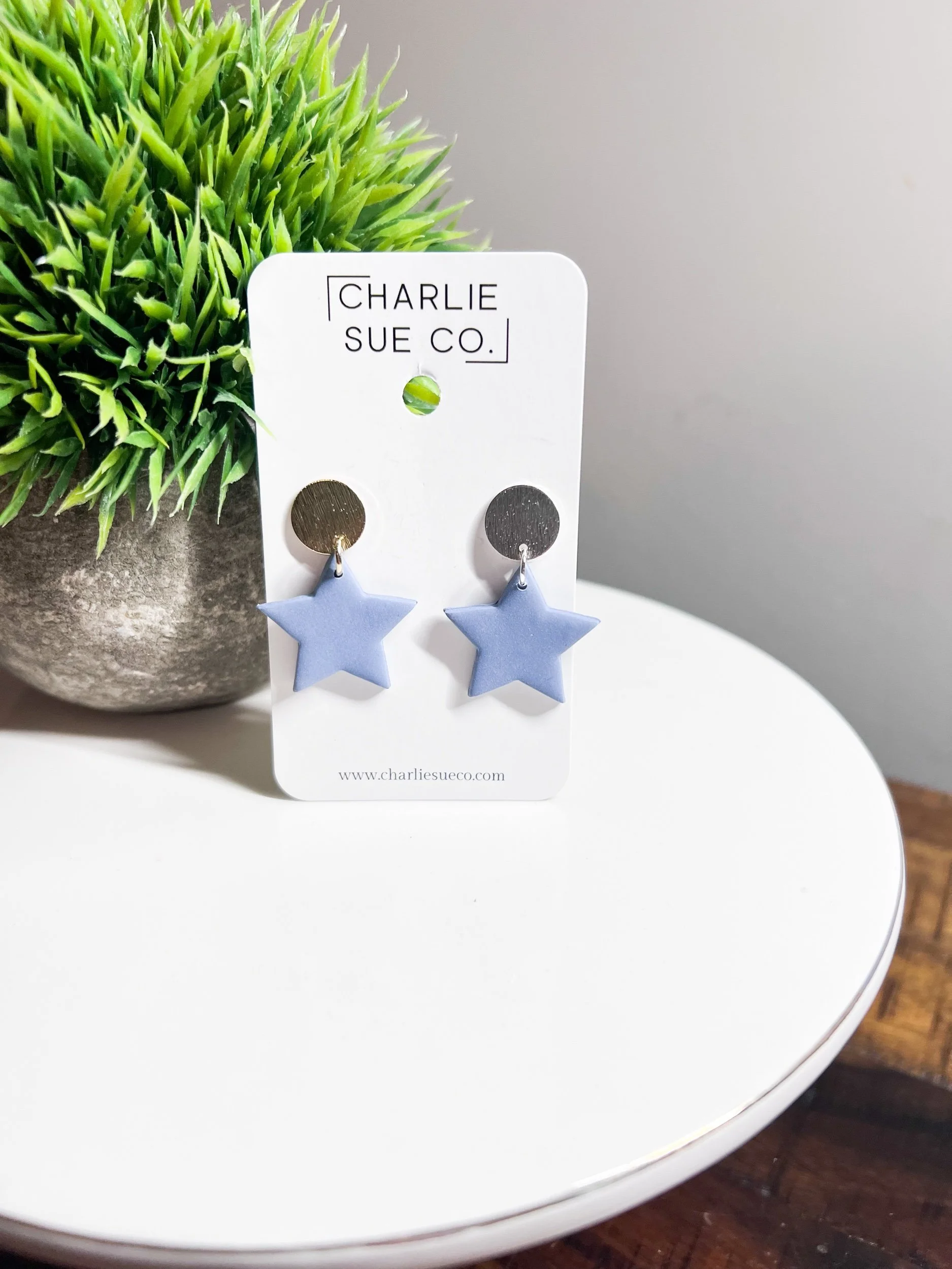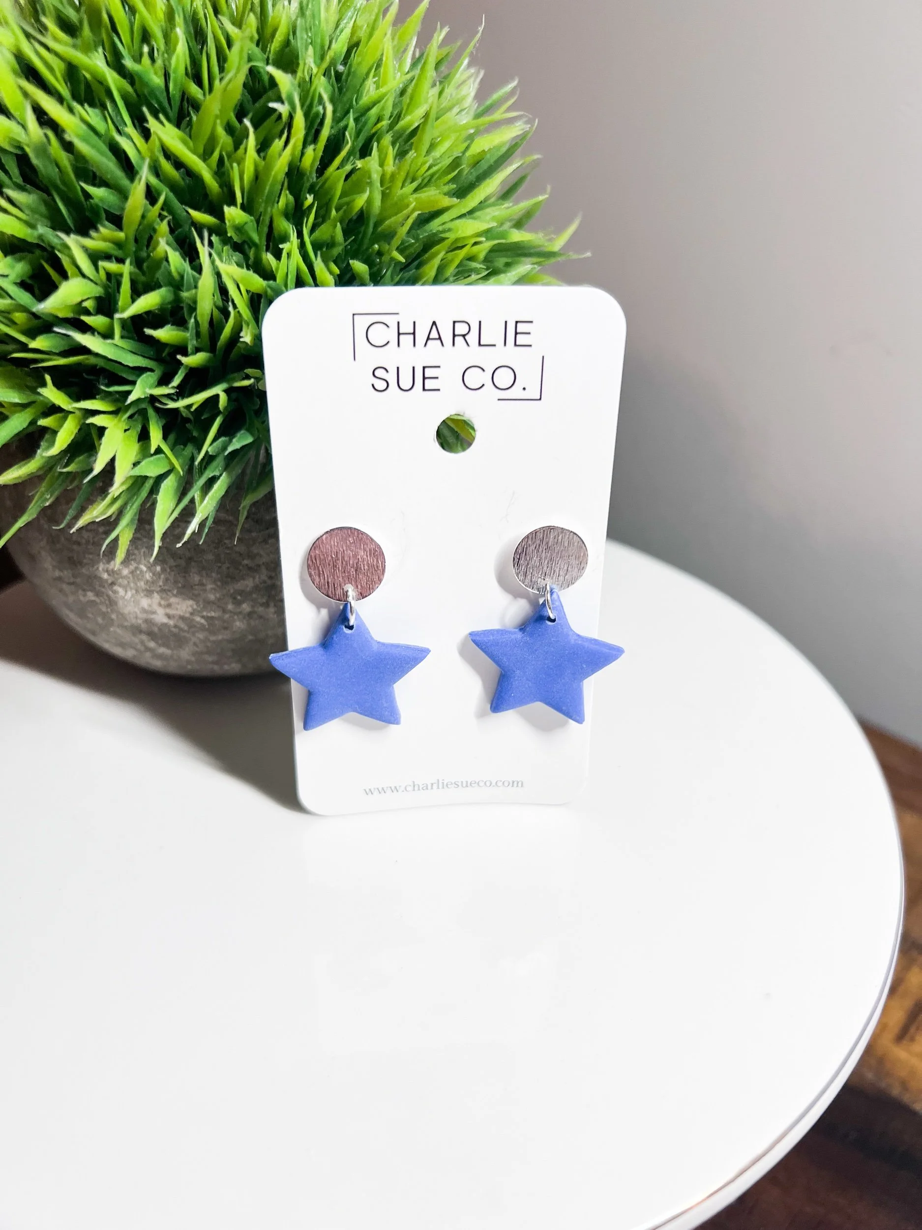 Shop › Star Mini Dangle Image 1 of 3 Image 2 of 3 Image 3 of 3 Star Mini Dangle $15.00 Color: Red Denim Blue Quantity: Add To Cart Added!