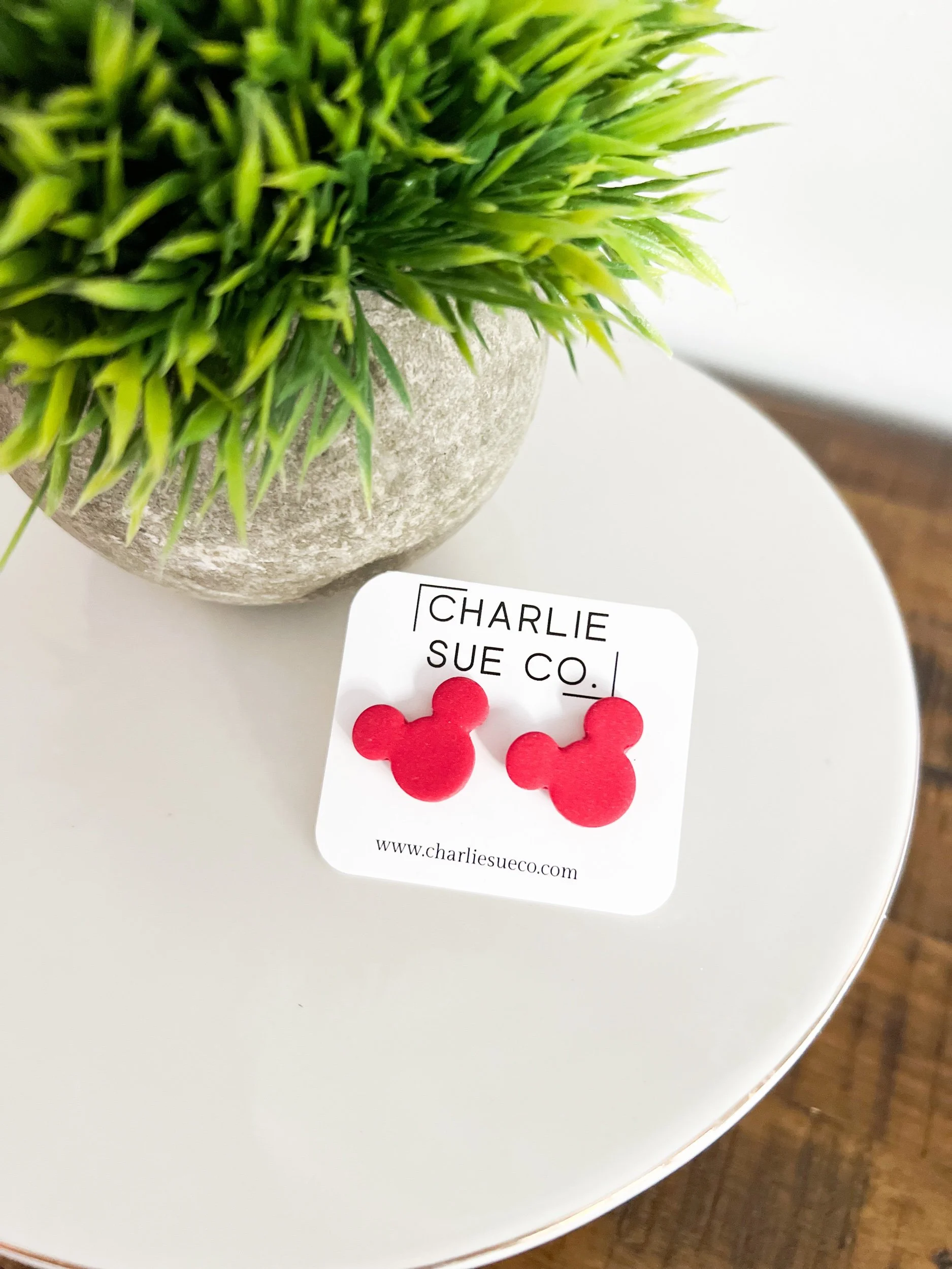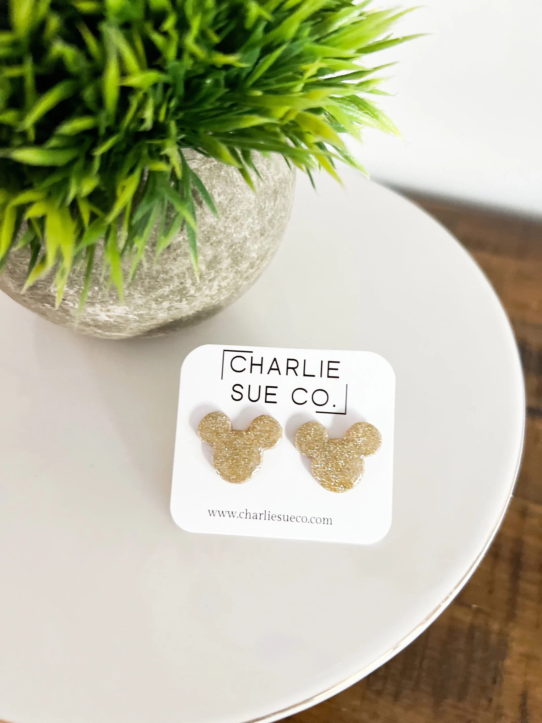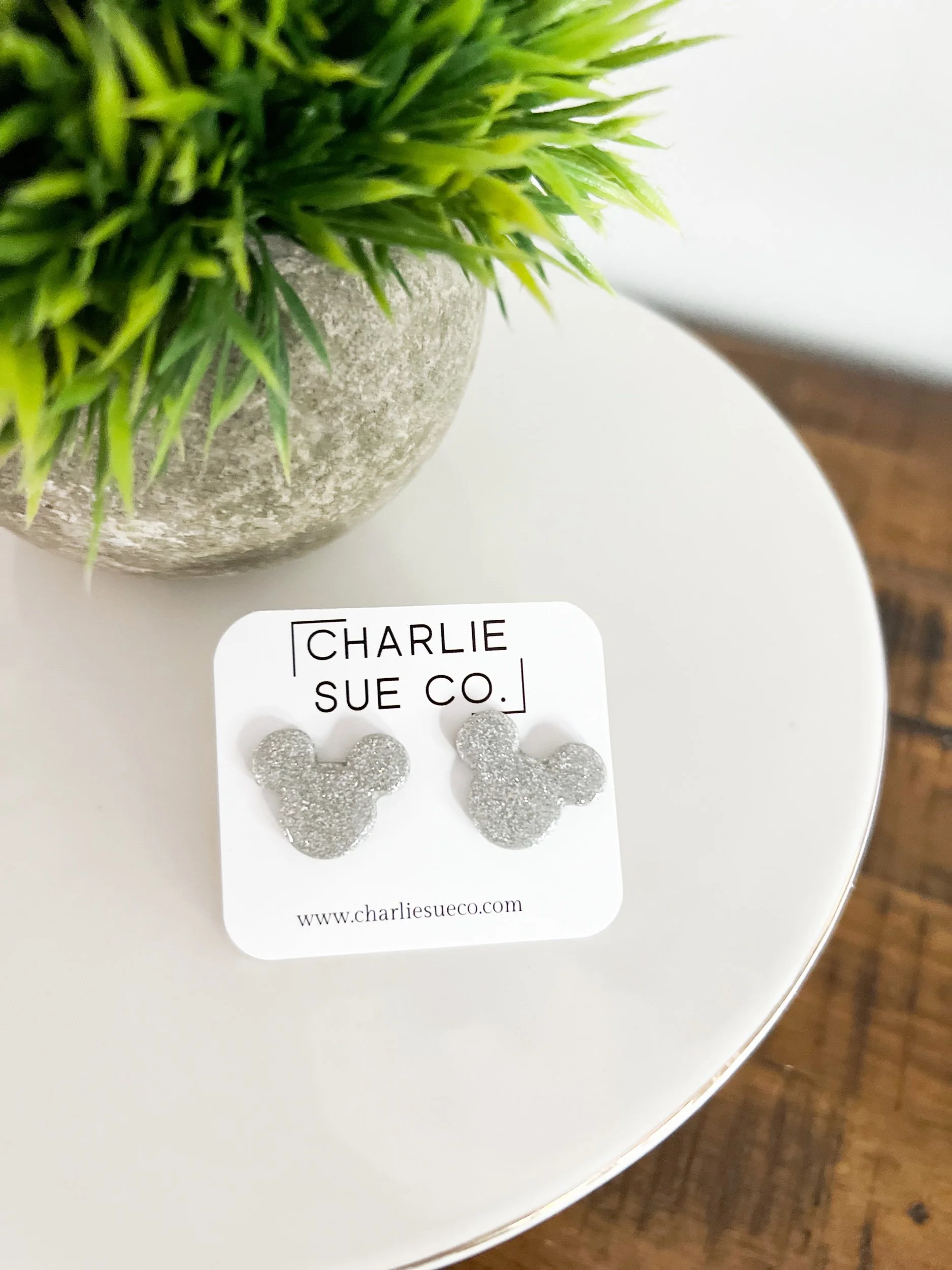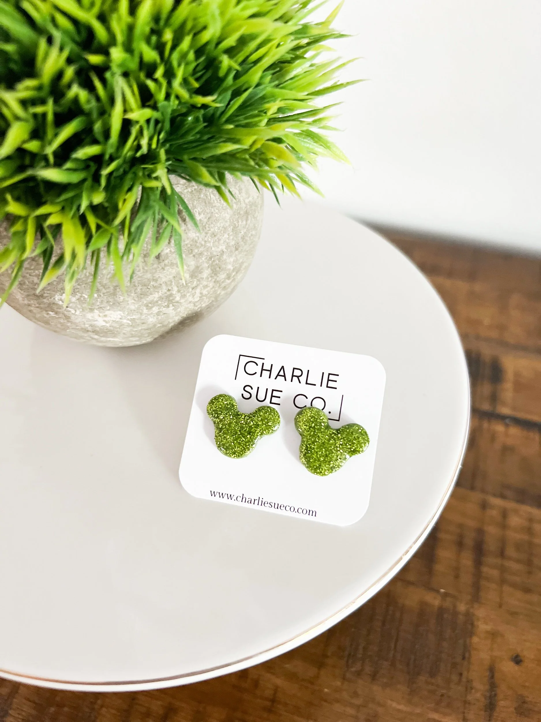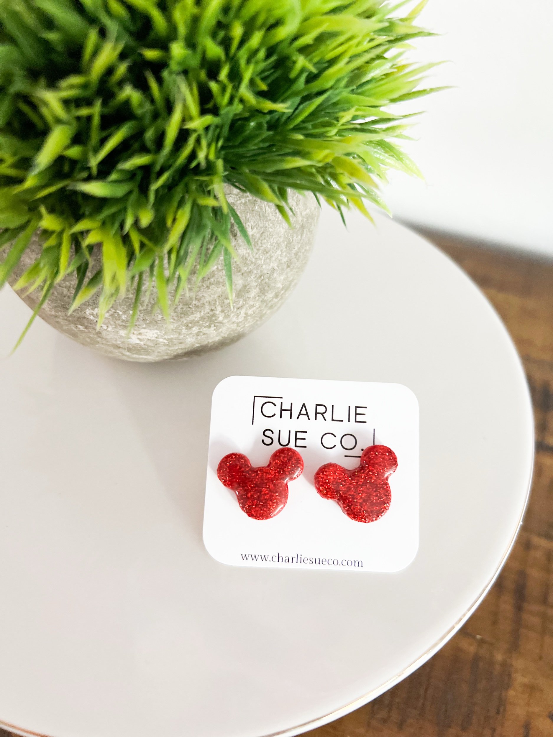 Shop › Mickey Stud Image 1 of 5 Image 2 of 5 Image 3 of 5 Image 4 of 5 Image 5 of 5 Mickey Stud $10.00 Color: Red Gold glitter Silver glitter Green glitter Red glitter Quantity: Add To Cart Added!
