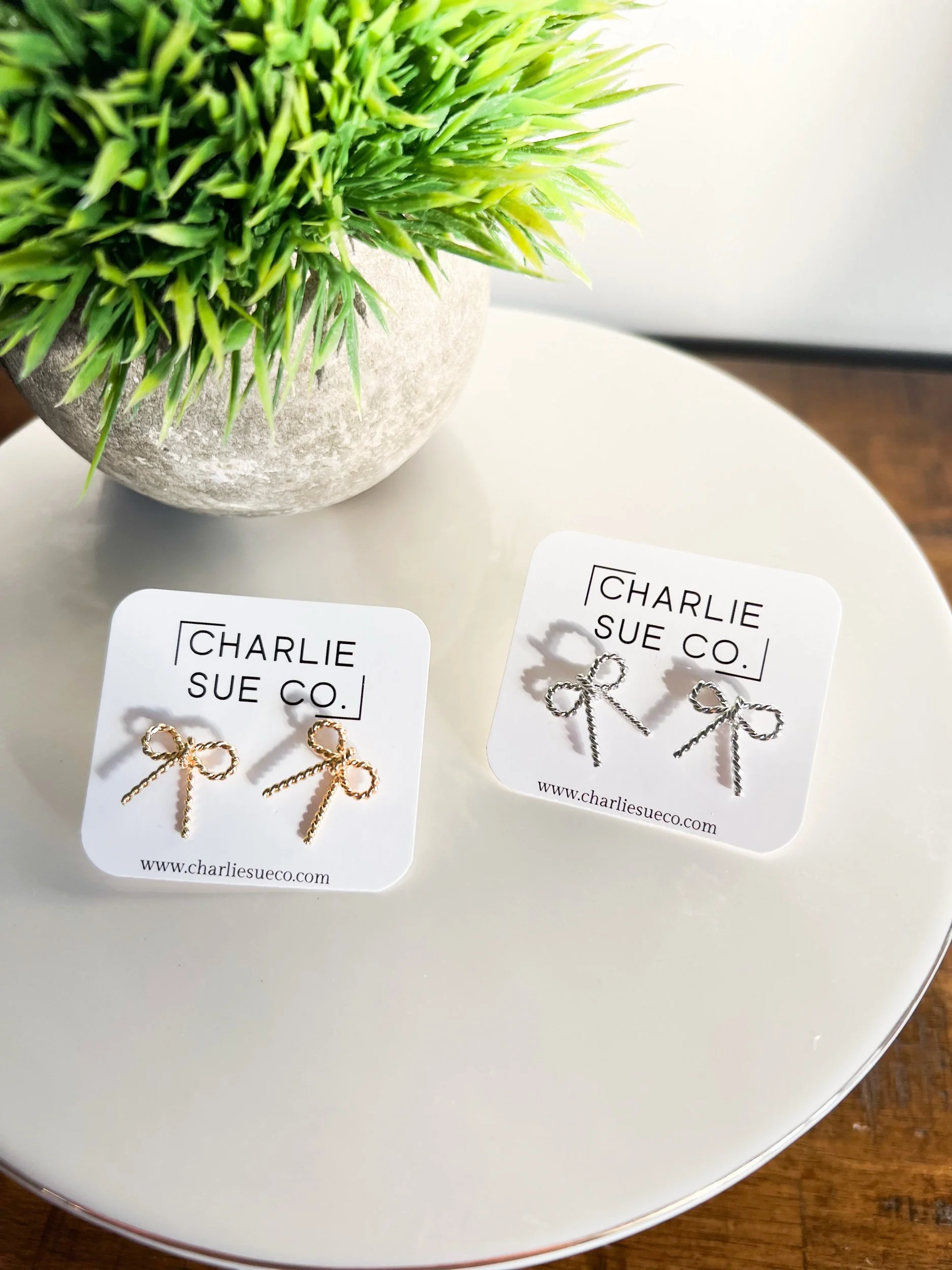 Shop › Metal bow stud Image 1 of 4 Image 2 of 4 Image 3 of 4 Image 4 of 4 Metal bow stud $10.00 Material: Gold Silver Quantity: Add To Cart Added!